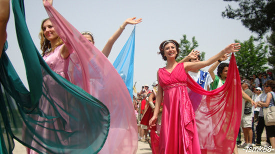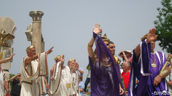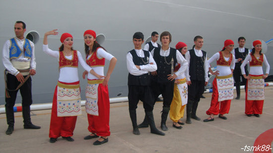 터키 [쿠사다시]에 도착해서 하선할 무렵 주민들이 전통의상으로